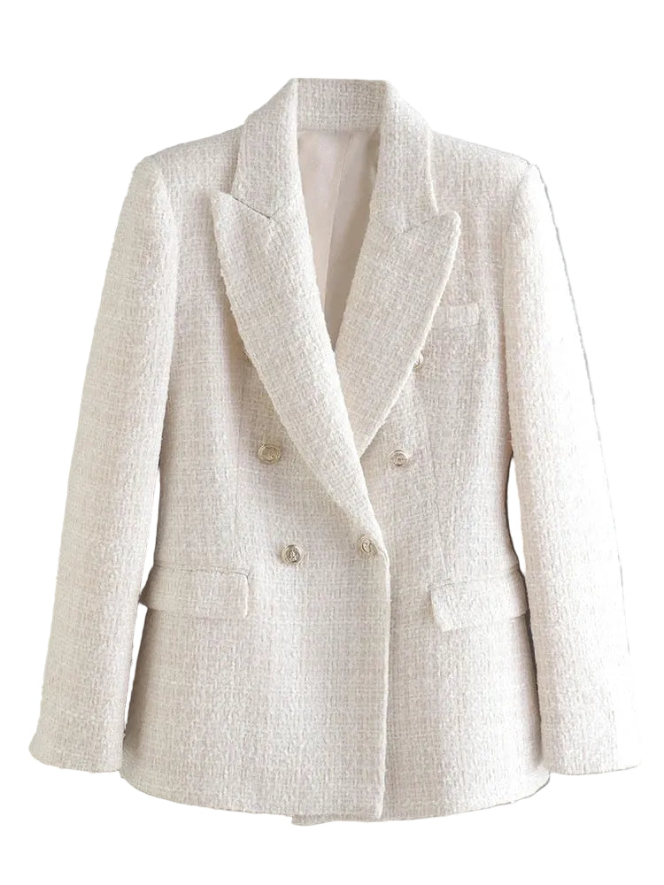 Women's Double-Breasted Blazer with Wide Lapels and Front Pockets