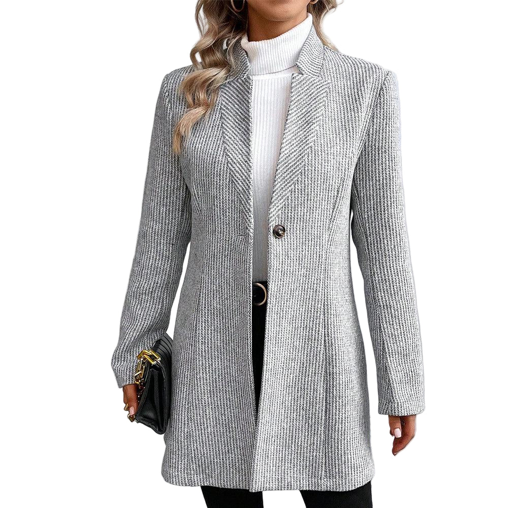 Women's Stand Collar Coat with Single-Button Closure and Herringbone Pattern