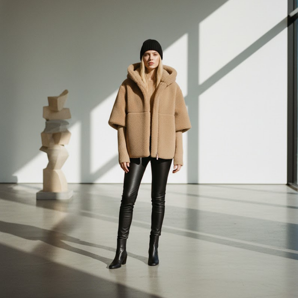 Women's Cropped Quilted Hooded Jacket with Snap-Button Front and Ribbed Knit Sleeves