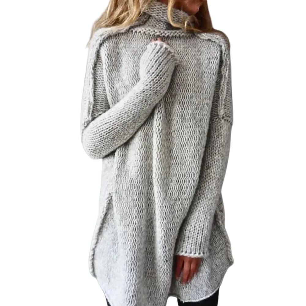Women's Cable Knit Turtleneck Jumper with Long Sleeves and Extended Hem