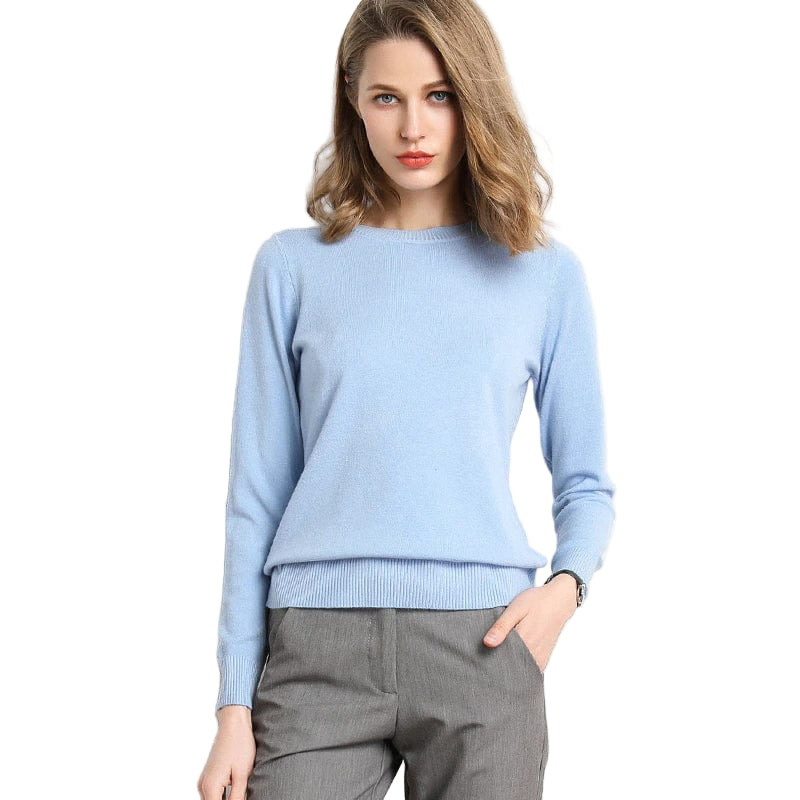 Women's Crew Neckline Jumper with Long Sleeves and Ribbed Hem