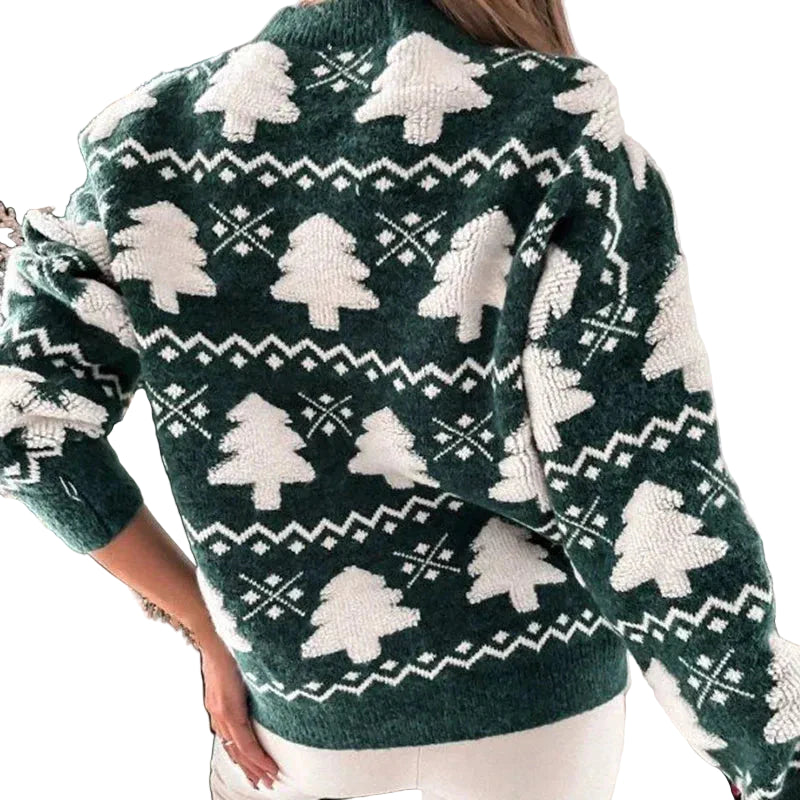 Women's Crew Neckline Sweater with Christmas Tree Pattern