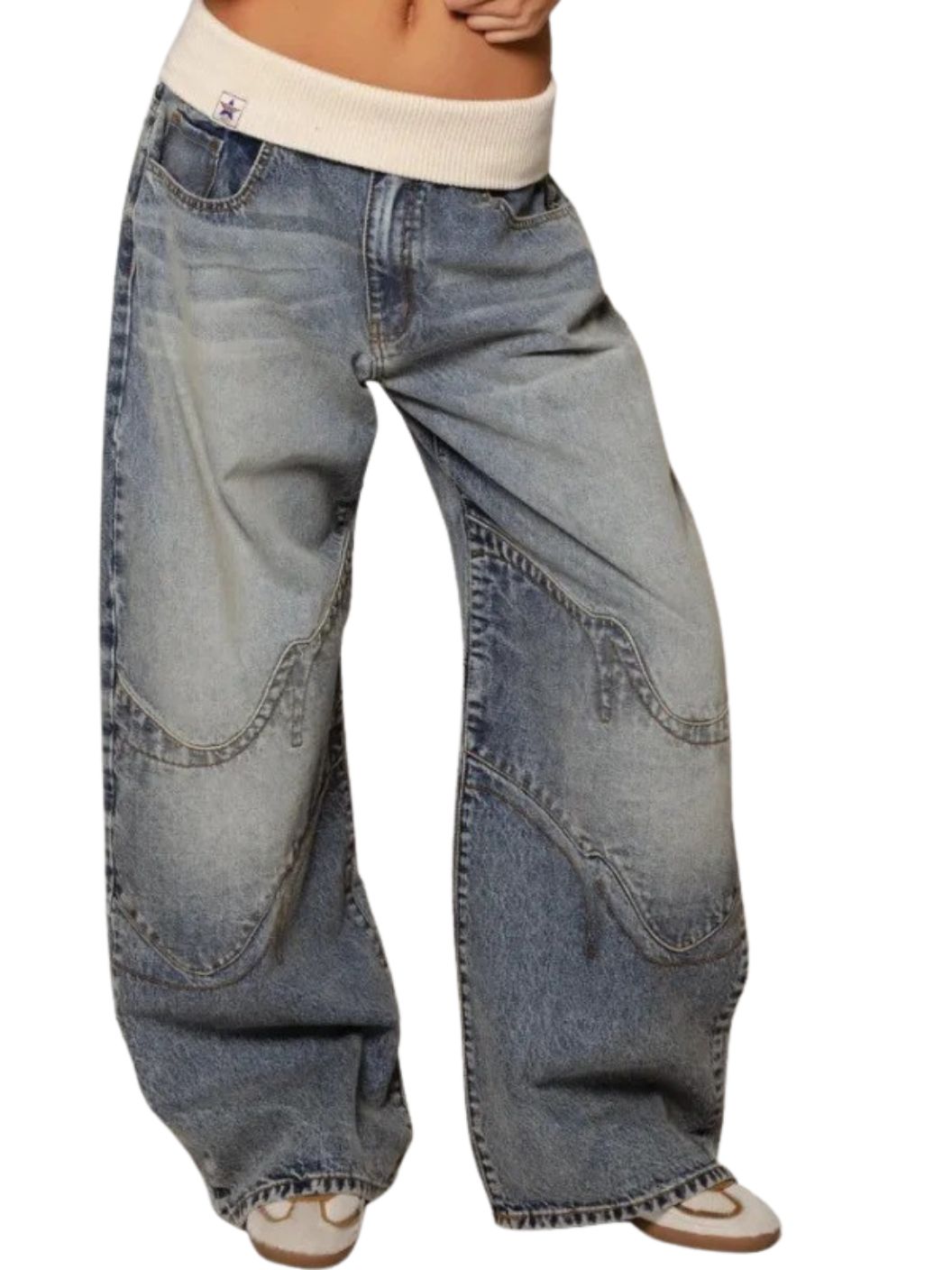 Women's Wide-Leg Denim Jeans with Curved Seams and Front Pockets